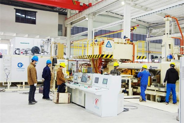 图为万峰精工铝业公司工作人员正在车间调试生产设备,为试生产做好准备。