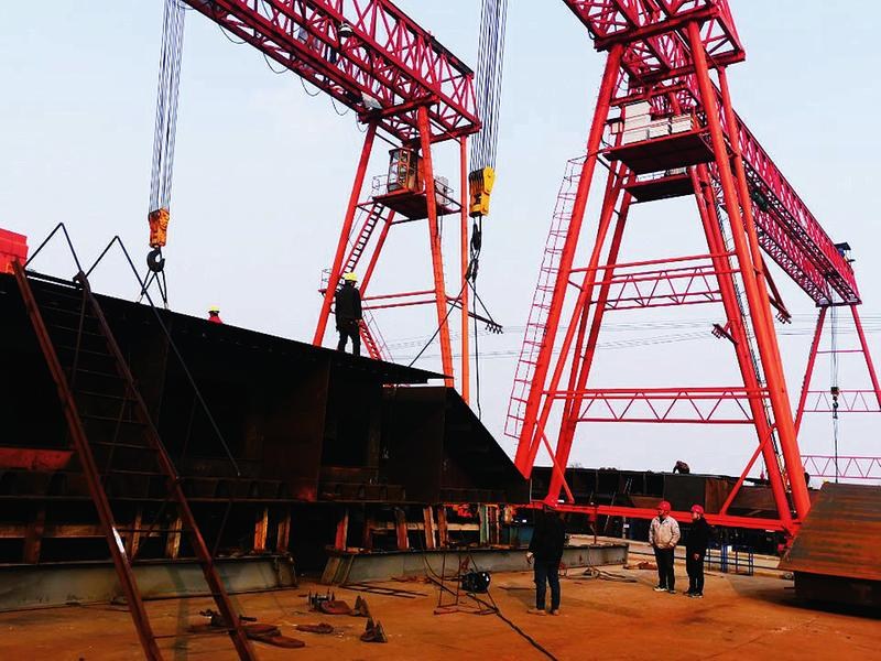 安徽中达桥梁钢构工程有限公司成立于2017年12月。公司拥有各类桥梁制造设备200余套,主要生产制作钢板组合梁、钢桁梁及各类城市高架钢箱梁,年生产能力约6万吨。据公司负责人介绍,该公司2022年克服各种不利因素,抢抓生产,生产效益良好,全年产值比上年度增长了60%。图为该公司工人正在焊接钢构桥梁组件。