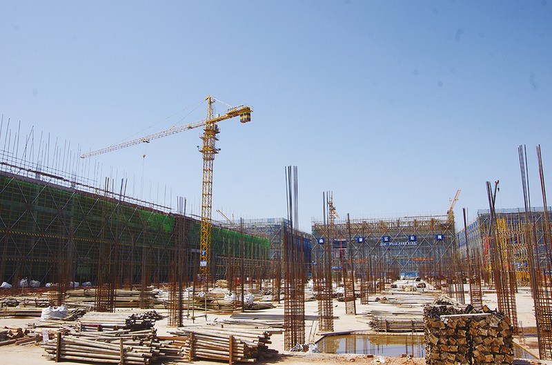池州九华蓝年产28亿米印染面料项目一期施工现场。